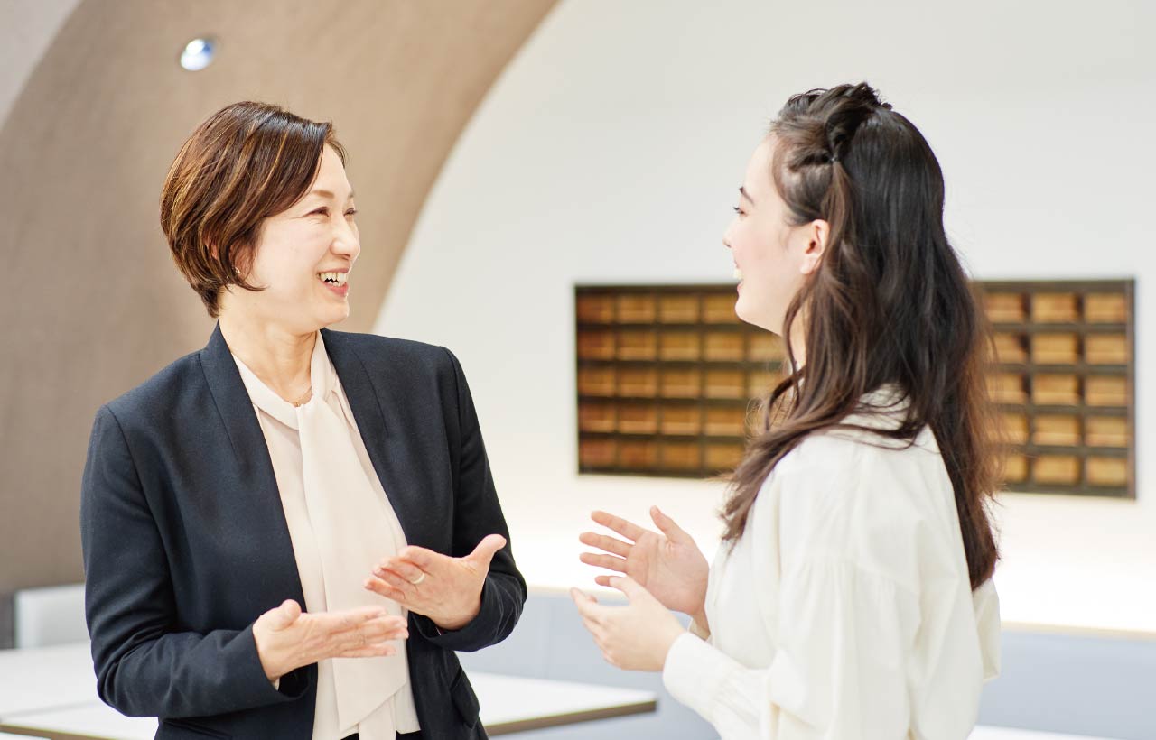 就職は人生の大きな転機です。これまでに学んできた知識や技術を発揮し、夢を実現するステージを決める大切な選択をします。キャリアサポート室では、大手前在学の4年間を通じて、就職支援を実施。互いに信頼関係を構築できるよう、傾聴することに重点をおき、学生の気持ちを尊重し肯定することに注意を払い、意思を固めるサポートを行っています。私たちは全員が進路決定するまで、一人ひとりに合わせた就職サポートに取り組んでいます。