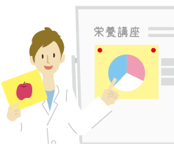 ダイエットをはじめメタボリックシンドローム予防および改善対策として、エクササイズの効果を上げるための食事指導を担当します。